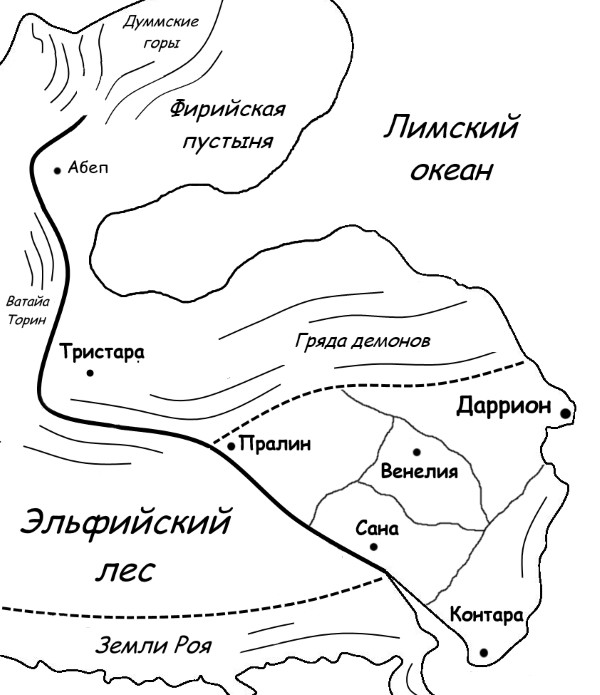 Тугрик раскинулся у правого берега медленной, толстой змеей ползущей по своему мелкому руслу реки Зеленки. Прямо посередине широкого, но уже подгулявшего за последнее десятилетие тракта. Трактирные споры по поводу того, откуда и куда ведет эта пыльная дорога, порой доходили до честного мордобоя. Венелийцы уверены, что тракт ведет из Венелии в Контару. Контарцы же, бьют пяткой в грудь и по мордам оппонентам, доказывая, что тракт идет все же из Контары в Венелию. Как бы то ни было, дорога эта соединяет два великих года Лиммы. А небольшой городишко с названием Тугрик стоит ровнехонько посередине между ними.