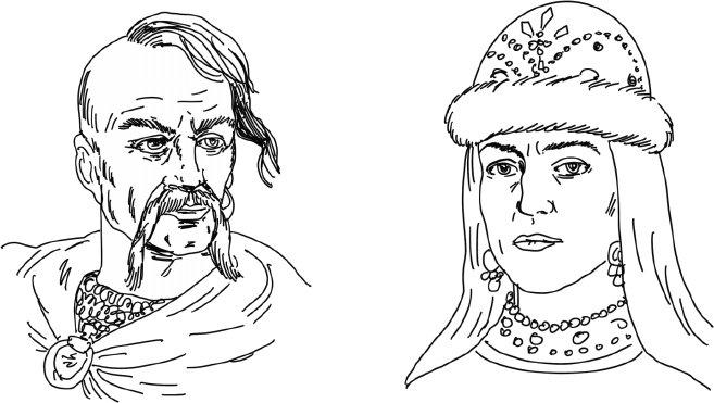 Похоже, и его облик не более чем заблуждение. Князя Святослава принято изображать с оселедцем – выбритым чубом на голове и в шароварах. Такой облик основан, казалось бы, на словах его современника Льва Диакона, лично видевшего Святослава: «он сидел на веслах и греб вместе с его приближенными, ничем не отличаясь от них. Вот какова была его наружность: умеренного роста, не слишком высокого и не очень низкого, с мохнатыми бровями и светло-синими глазами, курносый, безбородый, с густыми, чрезмерно длинными волосами над верхней губой. Голова у него была совершенно голая, но с одной стороны ее свисал клок волос – признак знатности рода». Вот только еще сто лет назад никто не стал бы рисовать Святослава этаким запорожским казаком с бритой головой, чубом и длинными вислыми усами. Такой образ князя стал популярен, как считается, скорее всего, с подачи ярого антинорманиста академика Б. Рыбакова, чтобы подчеркнуть отличие русов от скандинавов. Все дело в том, что такая прическа была больше характерна для тюрков. Так выглядели, например, правитель гуннов Аттила, булгарский хан Аспарух.