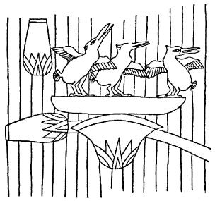 Рис. 6. Соцветия папируса. Многие авторы не отличали лотос от папируса. В действительности они совершенно не похожи друг на друга; именно такими их и изображали на египетских рельефах. Изображение из гробницы Ти