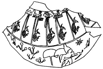 Рис. 13. Чибисы. На другом фрагменте вырезаны луки, свисающие с флагов. Изображение на булаве царя Скорпиона