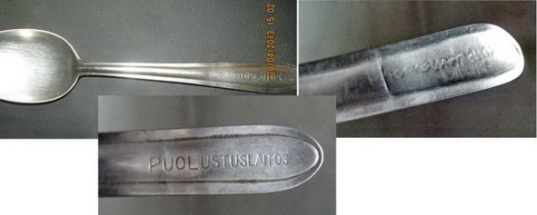 Позже, одна женщина, прочитав эту заметку, написала: «Финская ложка PUOLUSTUSLAITOS (в переводе Силы Обороны)»
