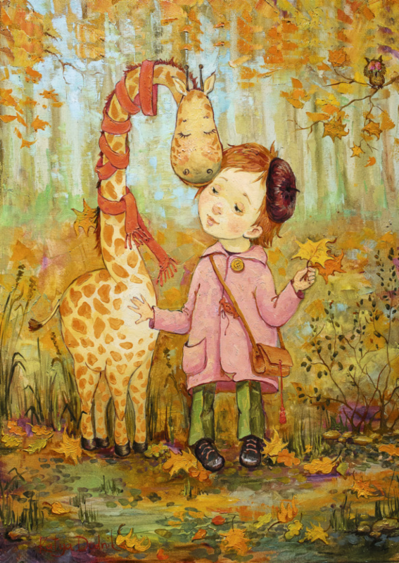 Жираф тоже был рыжий, и повязанный заботливой маминой рукой оранжевый шарф, чтобы маленький Генрих не простудил непомерно высокое горло, еще больше добавлял в его окрас всевозможные желтые оттенки. Казалось, сам месяц октябрь гуляет с Настей в городском парке, окруженный спешно разукрашенной в осень листвой.