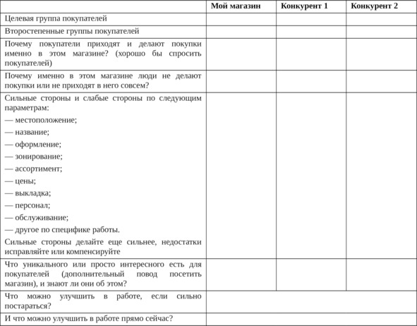Возьмите свой магазин, супермаркет и другие магазины по соседству и составьте для себя сводную таблицу, которая поможет не только уверенно противостоять конкурентам, но и значительно повысить эффективность работы вашего розничного предприятия.
