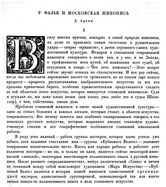 Аркин Д. Р. Фальк и московская живопись // Русское искусство. 1923. № 2–3. С. 24.