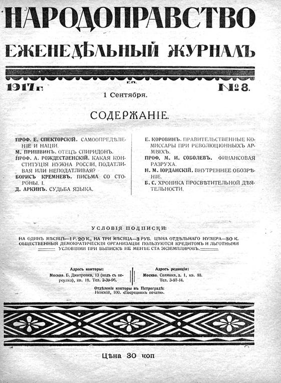 Ил. 2. Журнал «Народоправство». 1917. № 8. Обложка