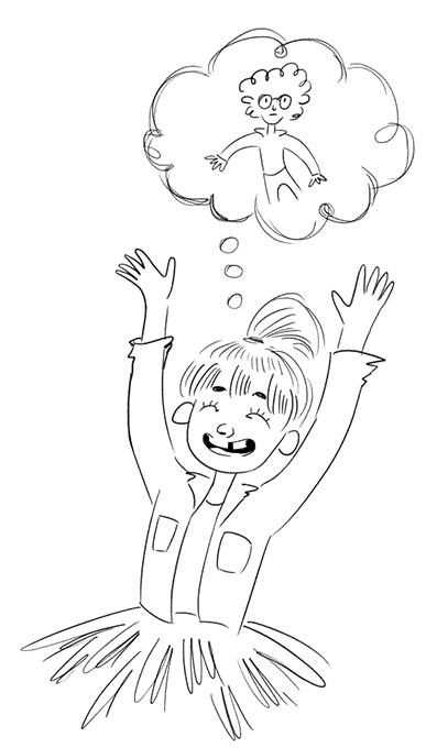 – Немножко похож на ДимДимыча, – подумав, сказала Вичка. – Котолый из мультика. У него зеленая лубашка, очки тоже зеленые и такие волнушки на голове. – Она рассмеялась и подпрыгнула: – Волнушки! Волнушки-кучеляшки! И еще веснушки, как у тебя и меня. И волосы тоже количневые, как твои. Только без синих плядок.