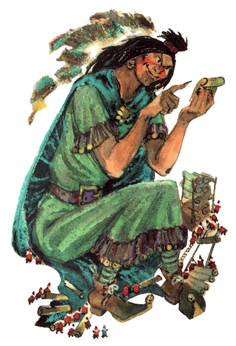 Невидимками шныряли они по стране, все выглядывали, подслушивали, запоминали. И так как заботливый Гуррикап открыл народам Волшебной страны секрет изобретённой им письменности задолго до того, как он стал известен в Большом мире, то гномы вели летопись. Разведчики, возвращаясь в родную пещеру, рассказывали очередному летописцу новости, а тот старательно записывал их на пергаментные свитки, которые маленький народец искусно выделывал из телячьей кожи.