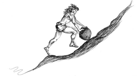 Одним из них был Сизиф, строитель и царь Коринфа, пытавшийся обмануть смерть, за что и был приговорен богами к суровому наказанию — вечно поднимать в гору тяжелый камень. Едва достигнув вершины, камень под своей массой срывался вниз, а бедный Сизиф возвращался за ним и катил его в гору снова и снова. Он стал символом мучительного, но бесполезного, бессмысленного и безрезультатного труда, а в ХХ веке французскими экзистенциалистами был вознесен на знамя абсурда человеческого существования.