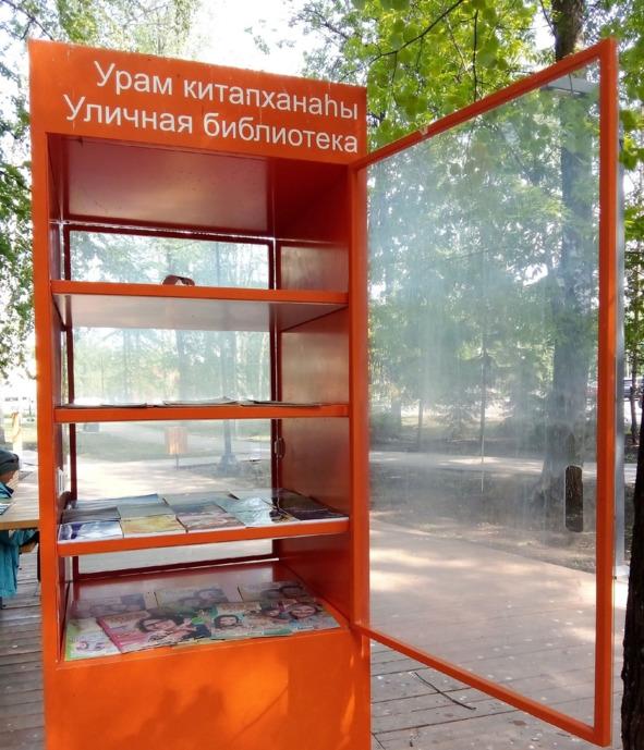 Вот такой библиотечный мини/«киоск» расположен в центральном парке Дёмского района (г. Уфа). И, конечно же, наши книги его украшают.