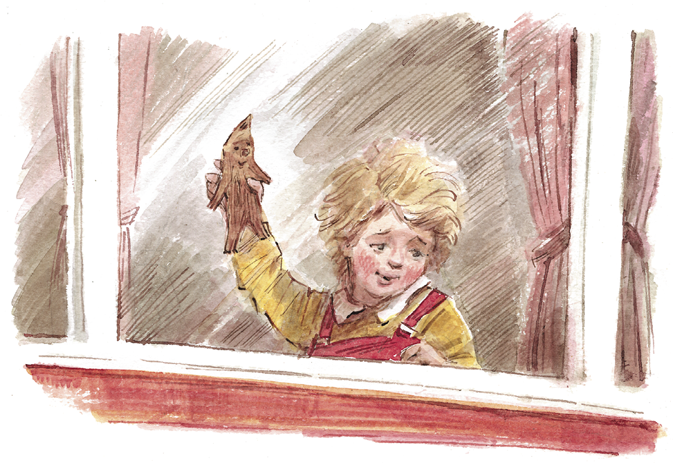 Начал он с Кнопки из домика на горе. Сперва Кнопка ужасно расстроилась, но потом сказала, что выйдет за Малыша замуж, когда вырастет, и перестала огорчаться так сильно. Старик столяр, его закадычный друг, вырезал ему в подарок лошадку, на которой верхом сидит принцесса с распущенными волосами. Тётушка Забота и Лилле-Бьёрн плакали самыми настоящими слезами из-за того, что Малыш уезжает. Вернее, переезжает, причём не один. Они уезжают все вместе: мама, папа, старший брат Филипп и он сам. Его, кстати, зовут Андреас, но для всех он просто Малыш.