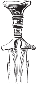 Некоторые из гальштаттских мечей настолько велики, что возникло предположение, будто их употребляли только во время церемоний, но я так не думаю. Конечно, они намного больше, чем какие бы то ни было из более ранних экземпляров (и намного больше тех, что делали в последующие 1500 лет), но даже с учетом этого они не настолько велики, чтобы им не мог орудовать человек высокого роста; многие из средневековых мечей, использовавшихся постоянно, были даже еще крупнее. Вероятно, здесь, как и во многих других случаях, вопрос был только в личном предпочтении владельца; для человека соответствующего телосложения, пожалуй, даже удобнее было работать длинным и тяжелым оружием, способным нанести противнику максимальный ущерб.