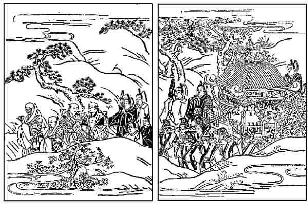 The Yengishiki contains no norito addressed to deceased Mikados, but several examples of this class, due no doubt to Chinese influence, have come down to us from the ninth century. In 850 Jimmu was prayed to for the Mikado, who was dangerously ill, and who died soon after. In the same year, "evil influences" (the Mikado's illness?) were attributed to his wrath, and envoys despatched to his tomb, in order to ascertain whether he might not have been offended by some pollution to it. The Empress Jingō was prayed to in 866 under similar circumstances. Other norito announce to the preceding Mikado the accession of a new sovereign or the appointment of a Prince Imperial.