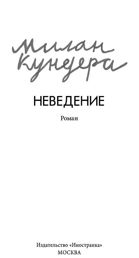 Неведение : роман / Милан Кундера ; пер. с фр. Н. Шульгиной. — М. : Иностранка, Азбука-Аттикус, 2022. — (Большой роман).