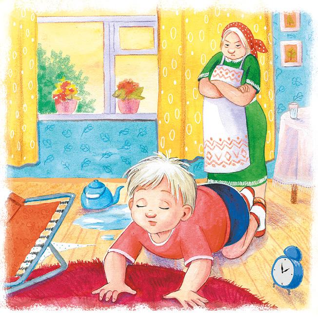 И Петька ползёт, не открывая глаз. Ползёт он к ковру.