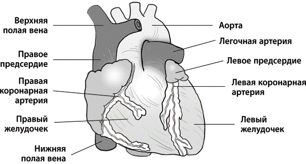 Рис. 2. Сердце человека, вид спереди