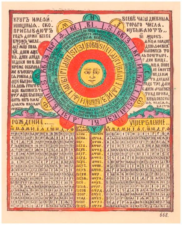 Календарь 1749 года. Лубок.