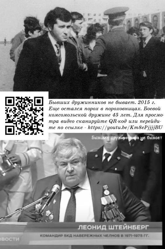 Леонид Данилович Штейнберг был легендой БКД Казанского авиационного института. Не просто смелый оперативник, но и талантливый организатор, он был ранен во время дежурства вместе с Артемом Айдиновым при задержании опасного преступника. Артем умер, а Леониду этот случай изменил судьбу. Мечта строить самолеты сменилась на мечту об обществе без насилия, в котором царят порядок и справедливость. При строительстве КАМАЗа он был среди первых, кто создал Боевую комсомольскую дружину в Набережных Челнах, долгое время работал заместителем начальника УВД города. Но не должностью измерялись его авторитет и влияние. Есть такое понятие «градообразующее предприятие», а есть «градообразующие люди». Леонид Данилович Штейнберг для Набережных Челнов был «градообразующим человеком». К нему приходили с самыми разными идеями, и если Штейнберг их поддерживал, то идея неизбежно реализовывалась.