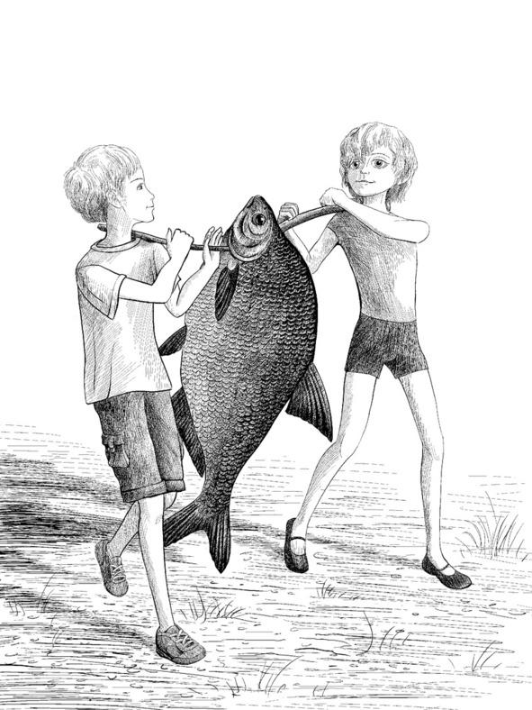 Вода перед наклонившимся мальчишкой забурлила ещё сильнее, и Пашке показалось даже, что он увидел мелькнувший над поверхностью рыбий хвост. Большой хвост. Не раздумывая, он бросился в воду и, чуть не столкнувшись лбом с Эликом, зашарил в воде руками. Руки сразу натолкнулись на скользкую спину здоровенной рыбины. Элик потянул рыбу на себя, вытащив из воды за жабры её голову. Глотнув воздуха, рыбина мгновенно присмирела.