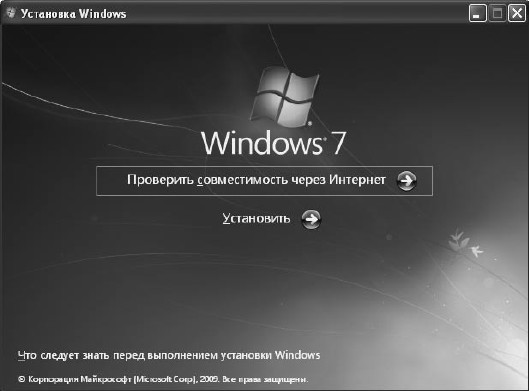 Находясь в старой версии Windows, вставьте в DVD-привод установочный диск Windows 7 и дождитесь появления окна, изображенного на рис. 1.11. Щелкните на ссылке Установитьи пройдите этапы, описанные в предыдущем разделе. Единственное отличие возникнет во время выбора места установки.