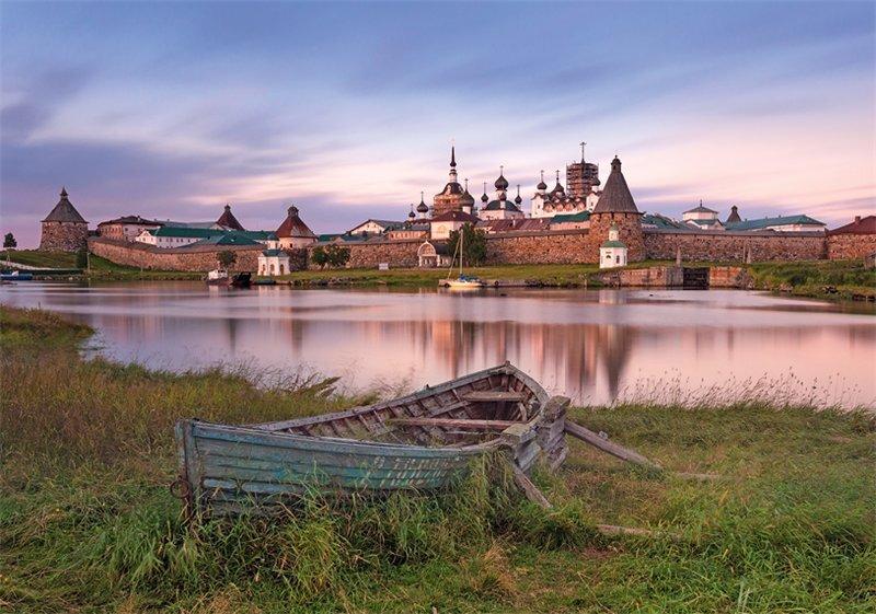 Вид на Святое озеро и Спасо-Преображенский Соловецкий монастырь, поселок Соловецкий, Приморский район, Архангельская область