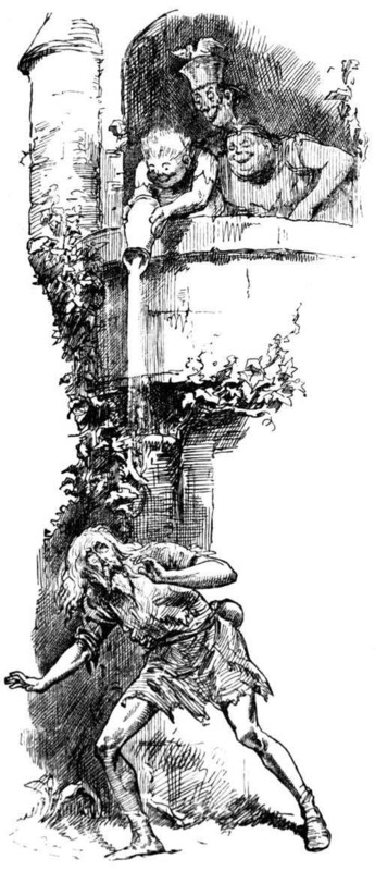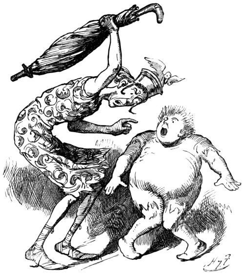 I was passing a pretty little villa, which stood rather back from the road, in its own grounds, with bright flower-beds in front—creepers wandering over the walls and hanging in festoons about the bow-windows—an easy-chair forgotten on the lawn, with a newspaper lying near it—a small pug-dog “couchant” before it, resolved to guard the treasure even at the sacrifice of life—and a front-door standing invitingly half-open. “Here is my chance,” I thought, “for testing the reverse action of the Magic Watch!” I pressed the ‘reversal-peg’ and walked in. In another house, the entrance of a stranger might cause surprise—perhaps anger, even going so far as to expel the said stranger with violence: but here, I knew, nothing of the sort could happen. The ordinary course of events—first, to think nothing about me; then, hearing my footsteps to look up and see me; and then to wonder what business I had there—would be reversed by the action of my Watch. They would first wonder who I was, then see me, then look down, and think no more about me. And as to being expelled with violence, that event would necessarily come first in this case. “So, if I can once get in,” I said to myself, “all risk of expulsion will be over!”