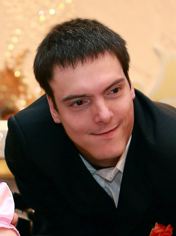 Вячеслав Егоров, инвалид 1 группы. Диагноз — ДЦП. Руки не работают совсем, абсолютно все делает ногами: пишет, ест, работает, пользуется телефоном и т. д.