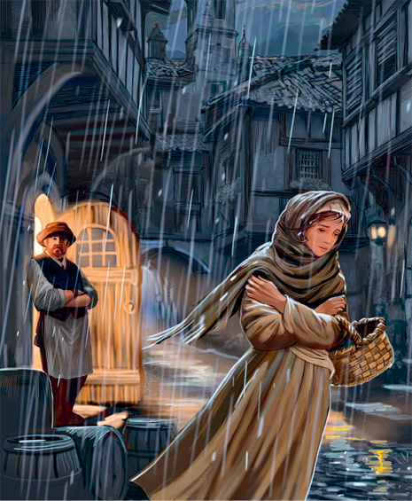 – У нас в доме нет даже крошки съестного, – сказала она соседке. – Я схожу в город, и мы с девочкой перебьёмся как-нибудь до возвращения мужа.