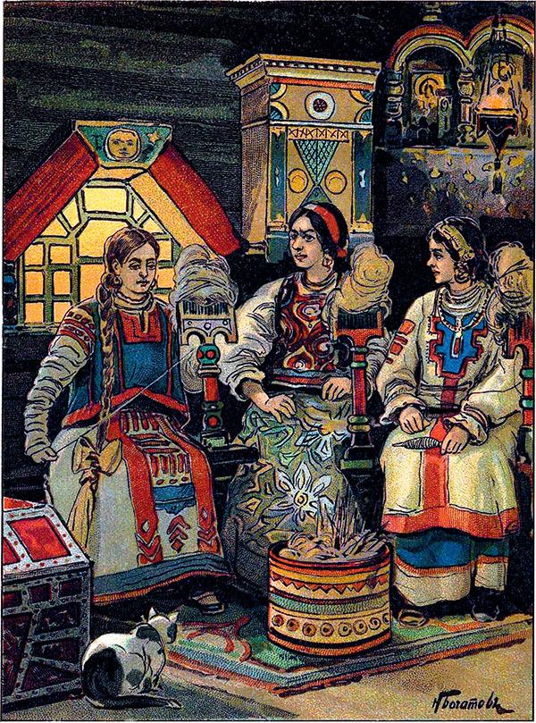 Пря́ли по́здно вечерко́м.