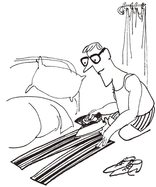 Большинство опытных продавцов мужской одежды оказывают услуги по ее глаженью и ремонту; очень многие следящие за своим внешним видом мужчины сами гладят брюки.