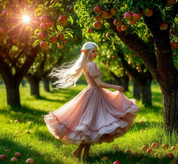Очаровательно улыбаясь, она протягивала к Варе руки. Потом они вместе бежали по яблоневому саду, сочные спелые плоды валялись на зелёной траве. Красивая эльфийка танцевала между деревьями, её волосы переливались на солнце, а изысканное нежно зелёное платье при каждом движении слегка развивал ветер. Ещё Варя видела черноволосого эльфа, его длинные волосы были распущены, он играл на арфе, а блистательная эльфийка пела. От её голоса в восторге замирала душа, он струился как весенний ручеёк и переливался как трель соловья.