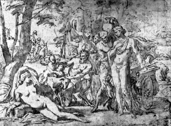 Уже начался свадебный пир, и гости собирались сесть за столы, как вдруг двор царского замка наполнился вооруженными людьми. Это явился Финей, приемный брат царя, который был раньше обручен с племянницей, но изменнически покинул ее в ее несчастье.