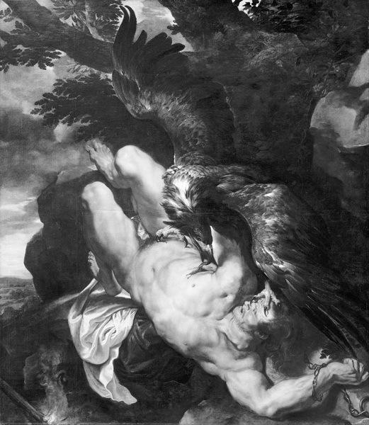 А Зевс уже насылает на него новую казнь. Могучий орел громовержца спускается к страдальцу и, разрывая когтями его тело, выклевывает печень. Громкие стоны титана проносятся над землей, заставляя содрогаться всех, кто их слышит. Сделав свое кровавое дело, птица улетает, но только для того, чтобы вернуться вновь. Растерзанная печень быстро возобновляется, и на третий день орел снова спускается с небес и снова растерзывает зажившее тело.