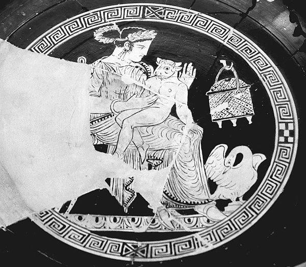 Пасифая и Минотавр. Краснофигурная вазопись на килике. 340–320 гг. до н. э.