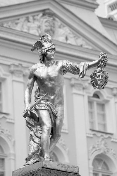 Когда Финей увидел превращение своих храбрых рыцарей, ужас охватил его и гордое упрямство его сменилось трусливыми мольбами. «О, оставь мне только жизнь, – молил он, стоя на коленях, – и пусть достанутся тебе и невеста и все царство!» Но Персей не знал жалости. Откинув его голову, так что тот не мог не взглянуть на него, он показал ему ужасную голову Горгоны. Шея и тело Финея вытянулись, умоляющий взгляд окаменел… Так остался он навеки в этой приниженной, рабской позе.