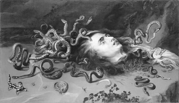 «Вы принуждаете меня обратиться к помощи моего старинного друга!» – крикнул он и с этими словами вытащил из мешка голову Горгоны и протянул ее к теснившимся вокруг рыцарям.
