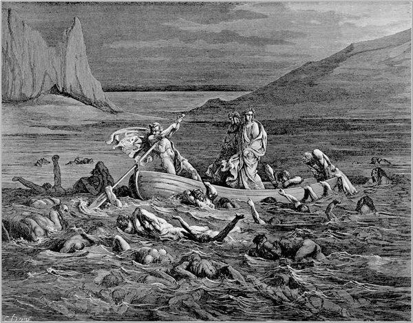 Всеми силами старались спастись люди. Одни из них карабкались на высокие горы, другие садились на корабли и лодки и плавали в них над потонувшими деревнями и городами, в напрасной надежде спастись. Скоро и до них добиралась вода, и они гибли, обессиленные тяжелой борьбой.