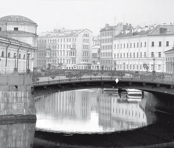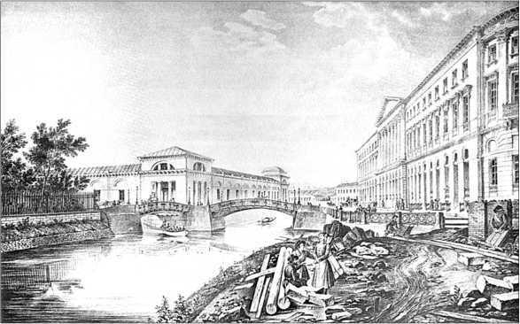 Строительство этого однопролетного арочного сооружения вел И.М. Голенищев-Кутузов. (Мост расширен в 1805-1806 годах архитектором Л. Руска.) Парадное оформление основных протоков в центре Петербурга завершилось в 1798-1810 годах благоустройством Мойки.