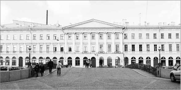 Мойка, миновав Придворные конюшни, огибает плавной излучиной два больших квартала, расположенных с западной стороны Большой Конюшенной улицы. В допетровские времена эта была глухая мутная протока, вытекавшая из болота на месте Марсова поля. Речка носила ижорско-финское название Муя (грязная). Русский вариант – Мья – в XVIII веке постепенно трансформировался в Мойку.