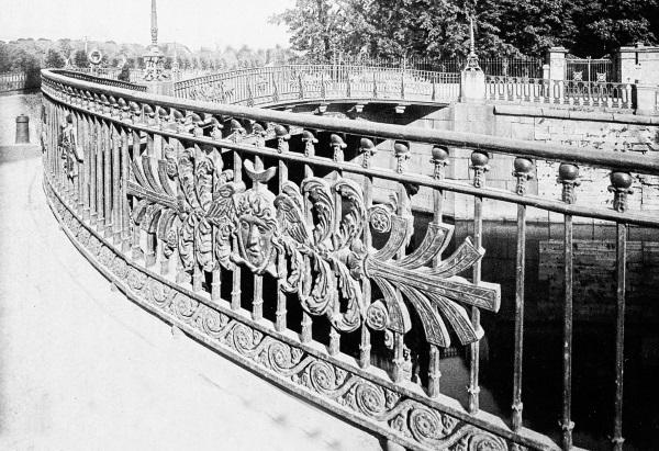 Непритязательное строение никак не соответствовало торжественно-величественному образу храма-мемориала, возведенного на месте смертельного ранения Александра II. Лишь отчасти утилитарный облик моста компенсировала изысканная решетка ограждения.
