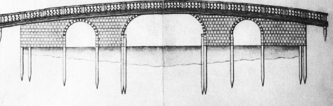 Авторский чертеж моста опубликован в кн.: Малиновский К.В. Указ. соч. С. 402.