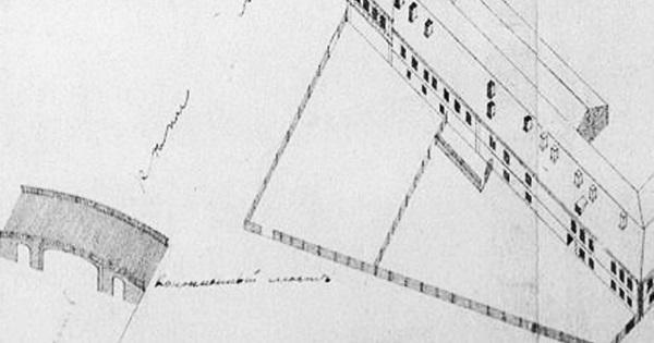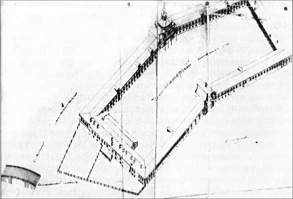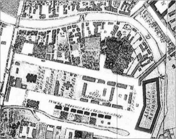 Марселиус X. Придворные конюшни. Фрагмент рисунка 1725 г.