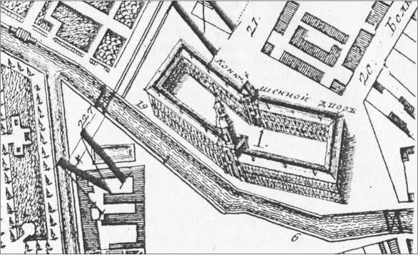 Семью Конюшенных должен был пополнить еще один водный проток, прорытый от Мойки к Глухой речке, или Кривуше. В тот же августовский день 1739 года этот канал, еще только намеченный, получил имя Конюшенного. На одном из планов середины XVIII века он обозначен с сопровождающей надписью: «Начатая постройка канала Конюшенного двора»[3]. Очевидно, устройство его велось в 1740-х годах. Прямая трасса канала зафиксирована на генеральном плане Петербурга 1753 года.
