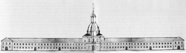 Придворные конюшни. Северный фасад. Чертеж 1740-х гг.