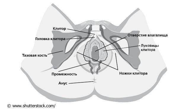 Сам клитор – это вершина айсберга клиторического тела. Дело в том, что клитор – это рудиментарный (то есть зачаточный) пенис. Это значит, что строение клитора и пениса сходно. И основная ткань, из которой состоят эти чувствительные органы, – кавернозная. Как и в пенисе, в клиторе два кавернозных тела. Это так называемые ножки клитора, которые держат само тело, выступающее в месте слияния малых половых губ. Ножки клитора в толще половых губ спускаются к наружной трети влагалища и огибают задний проход. Этот факт очень точно отвечает на вопрос о природе женского оргазма: он клиторический.