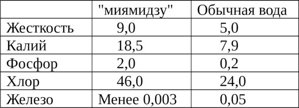 Примерный химический состав «миямидзу» и обычной колодезной воды (в мг/л)