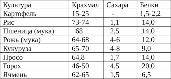 Основные компоненты сельхозкультур (в %)