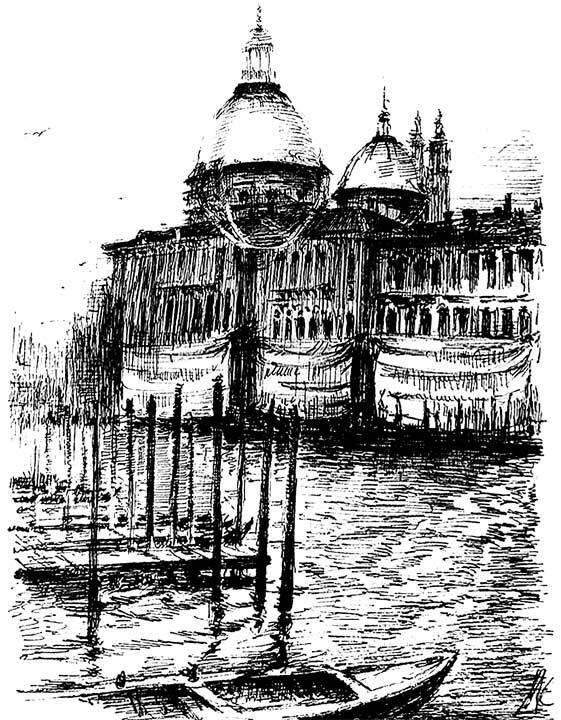 Отдельные лодки, груженные товарами, проплывают по каналу Джудекки. Жизнь течет. Жена напутствует отплывающего мужа из окна.
