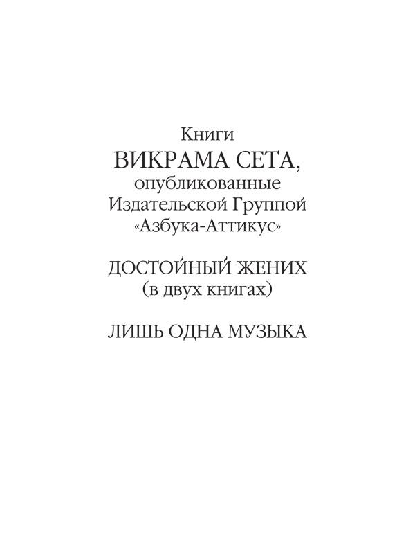 Лишь одна музыка : роман / Викрам Сет ; пер. с англ. О. Кравченко. — М. : Иностранка, Азбука-Аттикус, 2024. — (Большой роман).