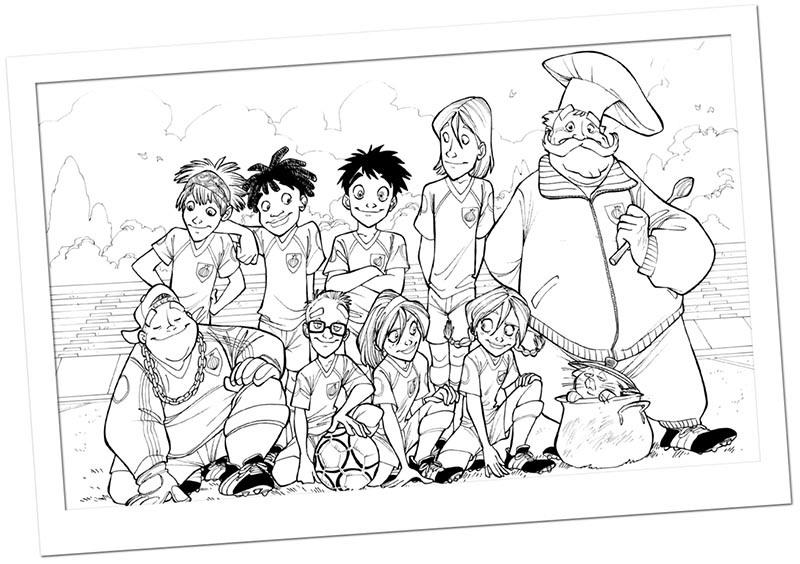 Скоро судья даст свисток, и начнётся игра, а пока у нас есть ещё пара минут, я познакомлю тебя с одним человеком, который играет очень важную роль в нашей истории. Он тоже сегодня на трибуне, ты его уже видел: это тот синьор, у которого на голове штука, похожая на гриб. На самом деле это поварской колпак. Синьор Гастон Шампиньон не кто иной, как повар.