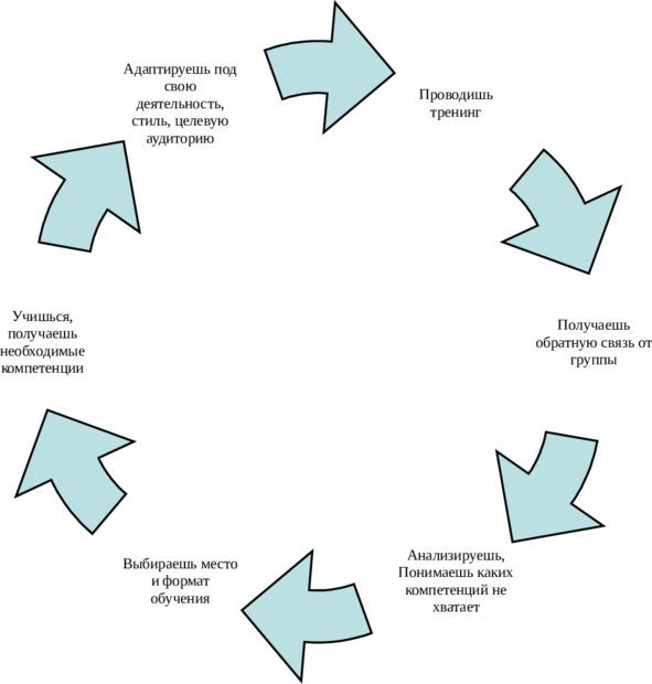 Тренерство — это постоянный выход из зоны комфорта! Нужно идти навстречу своим страхам и не бояться ошибиться: кто не ошибается — тот не пробовал! Не откладывай! Не жди, когда получишь много знаний, бери, выходи и проводи и, только получив обратную связь, дотягивай знания, только тогда ты сможешь понять, какие знания тебе реально нужны!